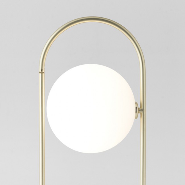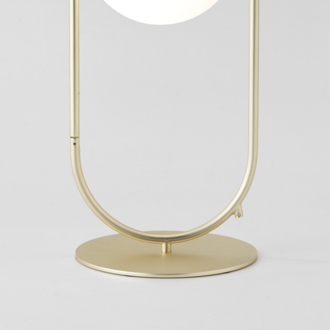Lampe de table Abbacus fine et élégante. Structure principale en métal doré avec un abat-jour en verre clair ou opal sphérique pour un bel effet lumineux. Style vintage. Idéal pour salon, salle à manger ou chambre à coucher.
