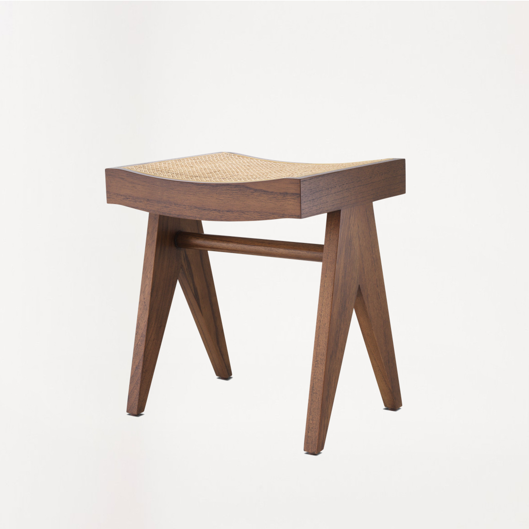 Inspirée des meubles design emblématiques de Pierre Jeanneret, le tabouret Arnaud associe qualité et simplicité. Fabriqué à partir de bois massif. La belle assise ajourée est en rotin tressé à la main.