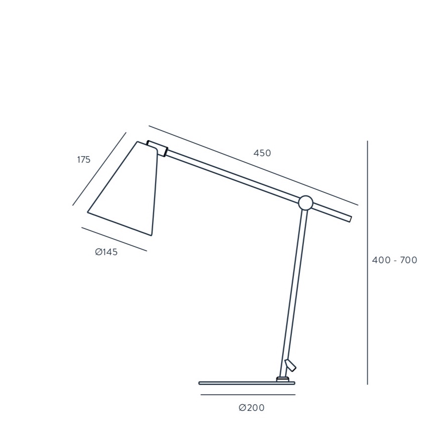 Lampe de table Boa montée sur pivot afin de diriger l’éclairage là où vous en avez besoin. Réalisé en métal noire mate et un abat-jour en or.