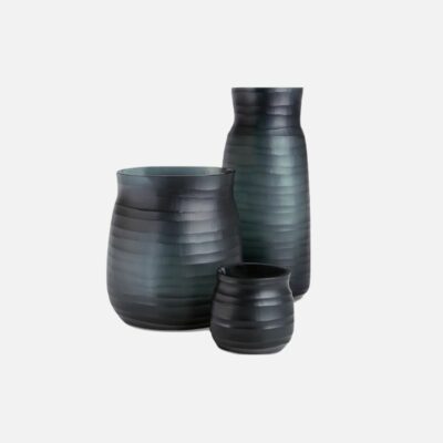 Vase en verre Nagaa, soufflé / surface découpée à la main.