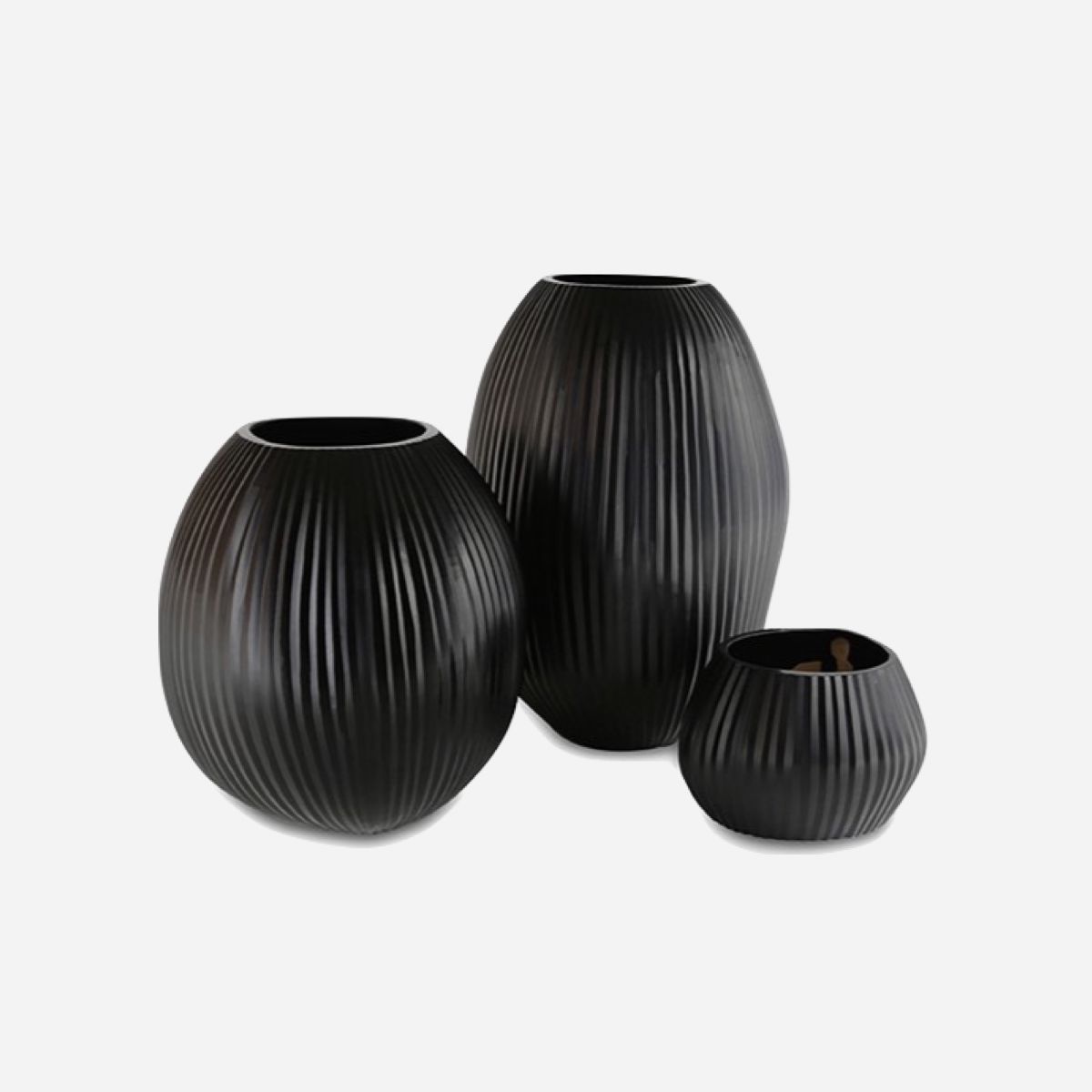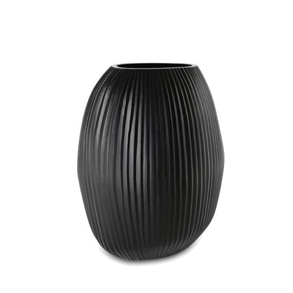 Vase Nagaa black en verre soufflé / surface découpée à la main.