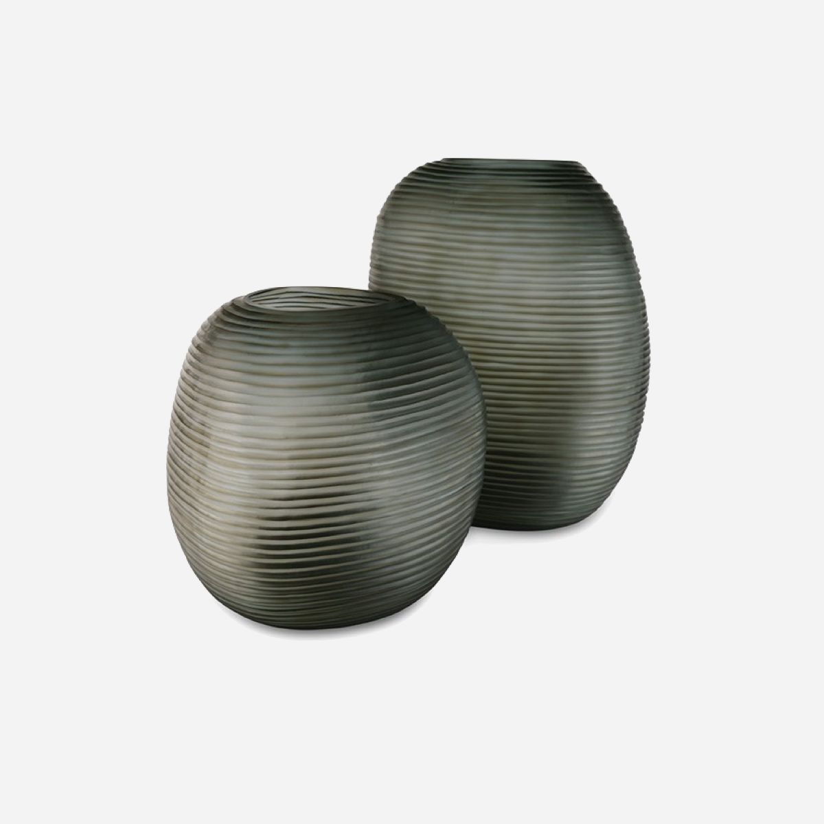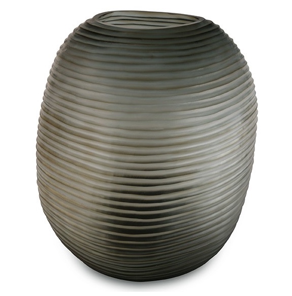 Vase Patara Indigo Smokegrey en verre soufflé / surface découpée à la main.
