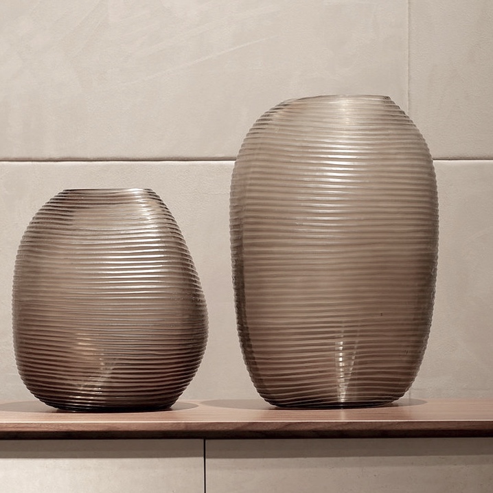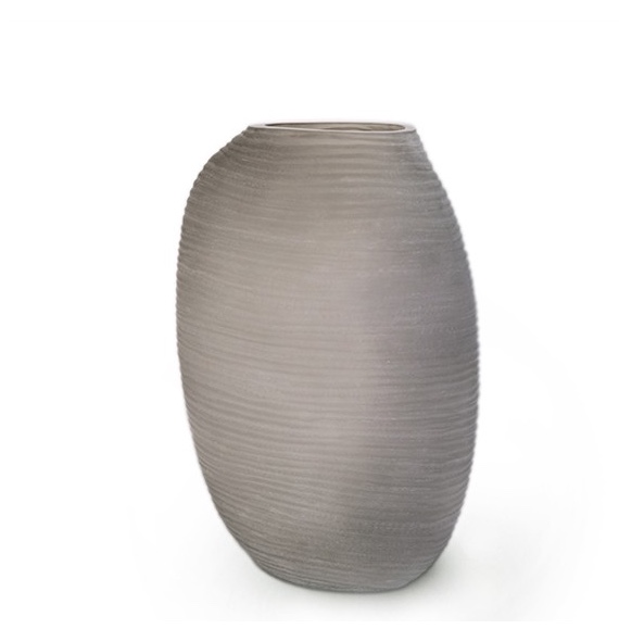 Vase Patara Smokegrey en verre soufflé / surface découpée à la main.